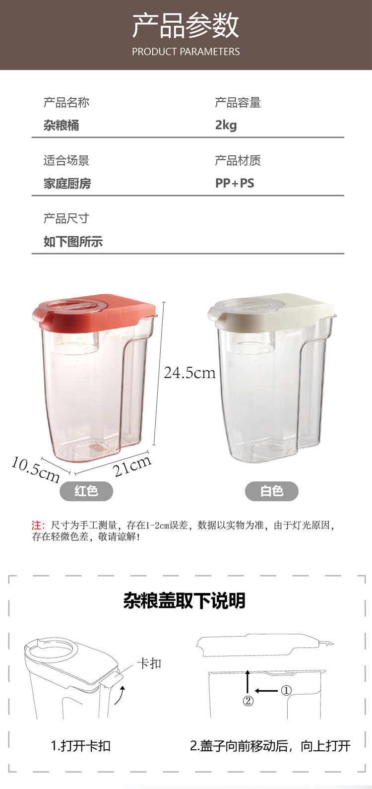 厂家现货 2kg塑料日本米桶 透明五谷杂粮桶 新款日式带量杯储米箱