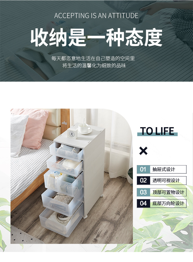 厂家现货批发多功能夹缝抽屉柜带轮塑料组合柜简约现代杂物收纳柜